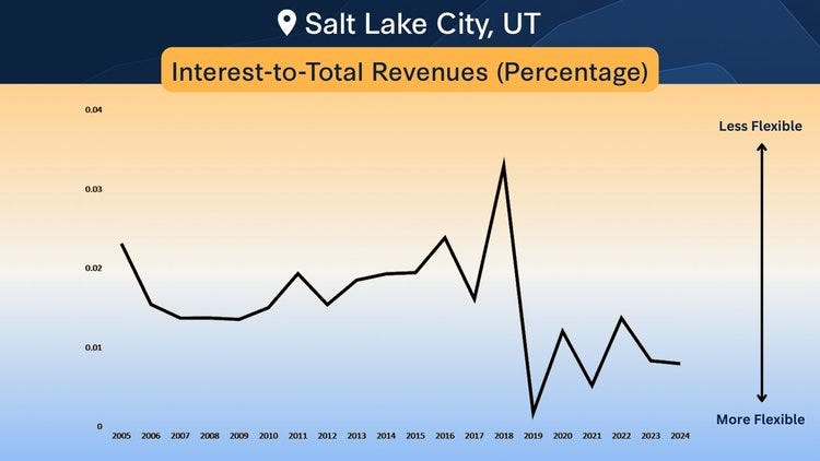 At the same time, lower interest rates allowed Salt Lake City to reduce the amount of its budget it spends on interest.